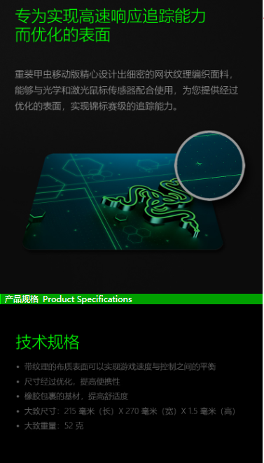商品名称:雷蛇 RAZER 重装甲虫移动版 游戏鼠标垫