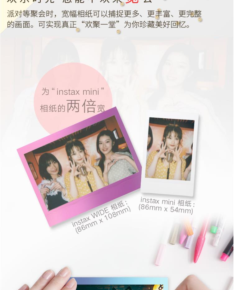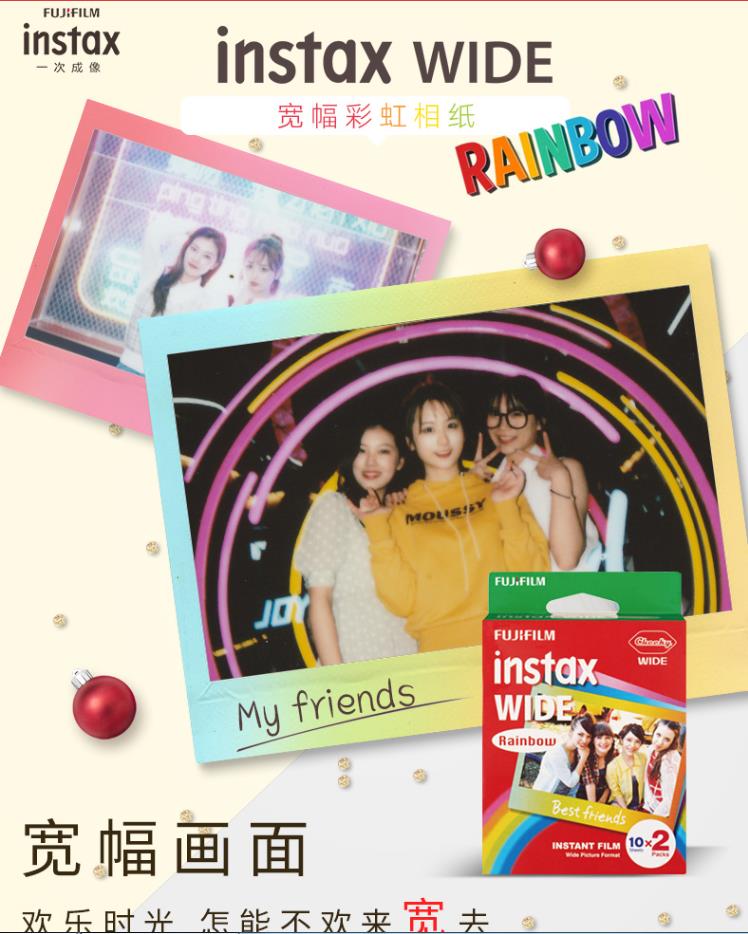 富士 FUJIFILM INSTAX 一次成像相机 WIDE相纸(胶片)宽幅相机专用(彩虹版)