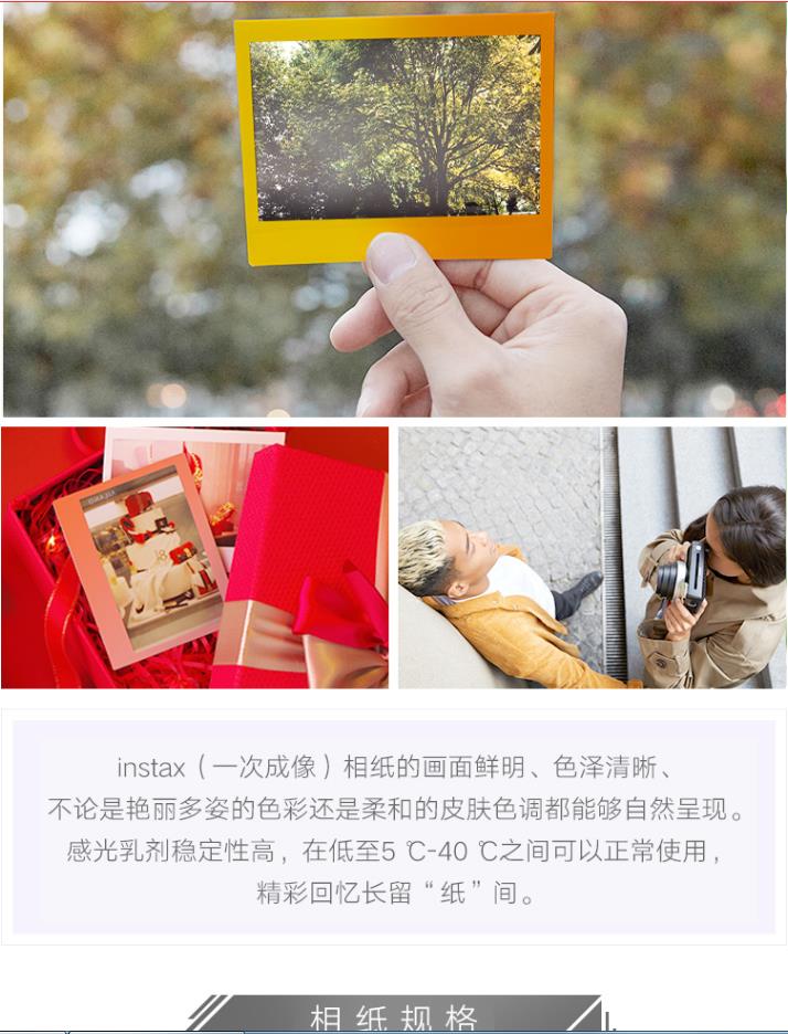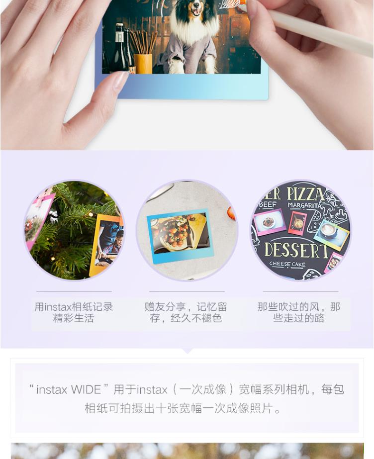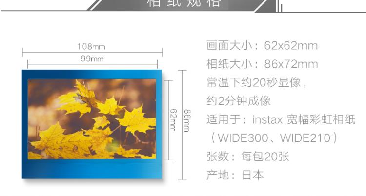 商品名称:富士 FUJIFILM INSTAX 一次成像相机 WIDE相纸(胶片)宽幅相机专用(彩虹版)