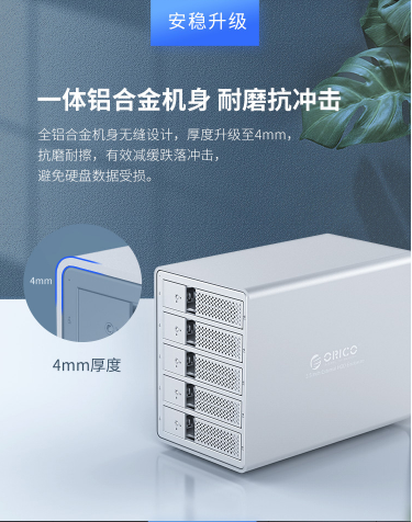 商品名称:奥睿科 ORICO 9558U3 3.5英寸 USB3.0 SATA串口 台式机外接硬盘盒子 五盘位 黑色