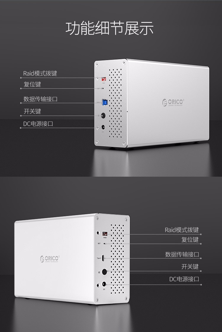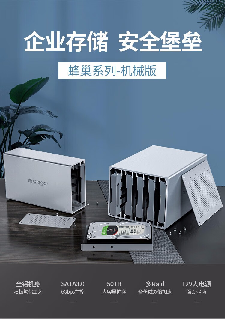 商品名称:奥睿科 ORICO WS500RU3 全铝机械式阵列柜(带阵列) 3.5英寸 五盘位