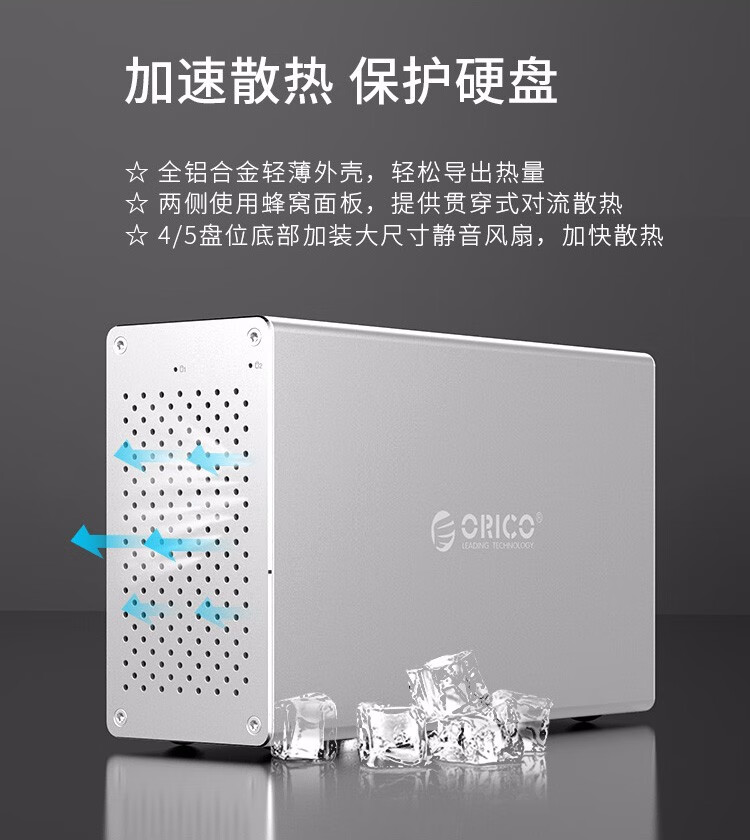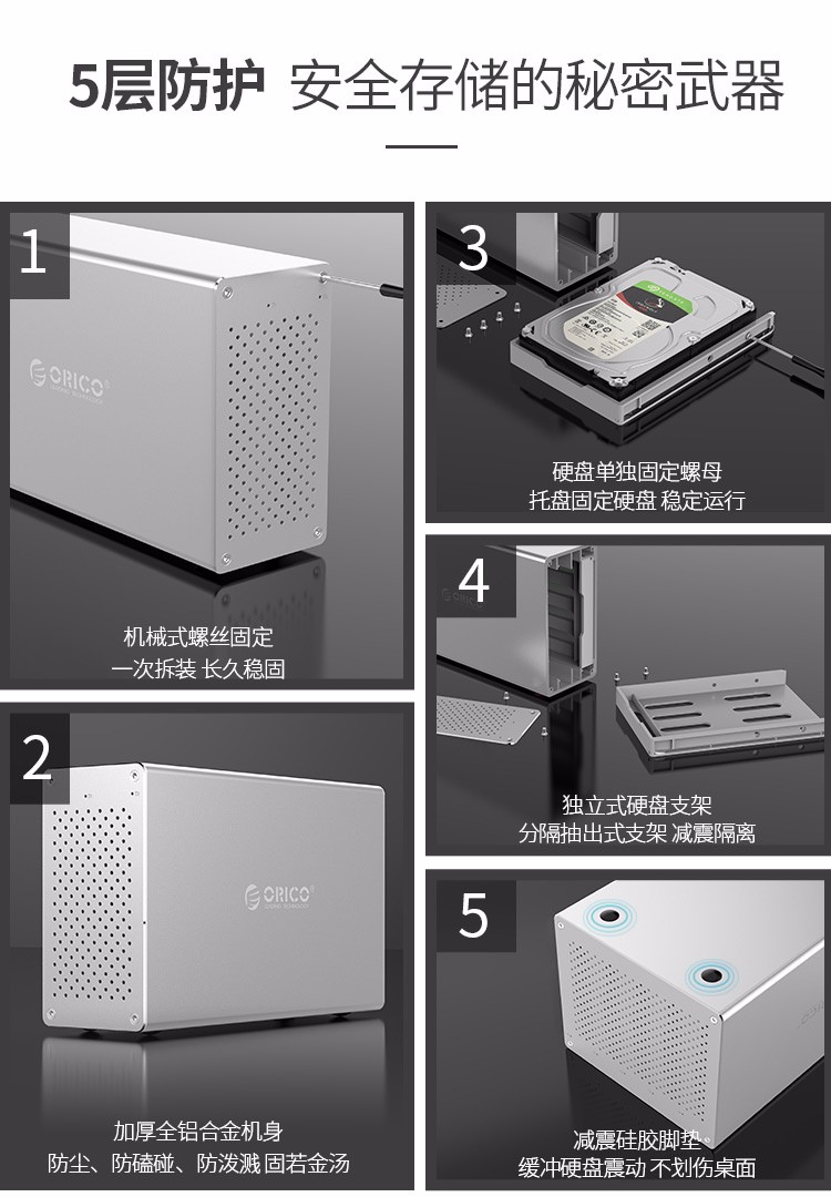 奥睿科 ORICO WS500RU3 全铝机械式阵列柜(带阵列) 3.5英寸 五盘位