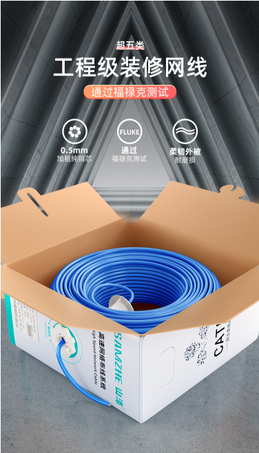 商品名称:山泽 SAMZHE PC5305 0.5MM纯铜线芯 305米 8芯双绞线 蓝色 网线