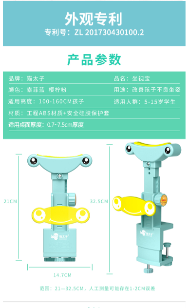 商品名称:猫太子 MAOTAIZI M8000B 坐姿矫正器 可升降 索菲蓝