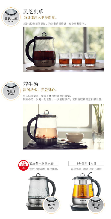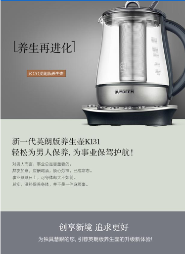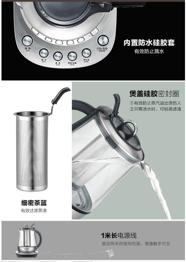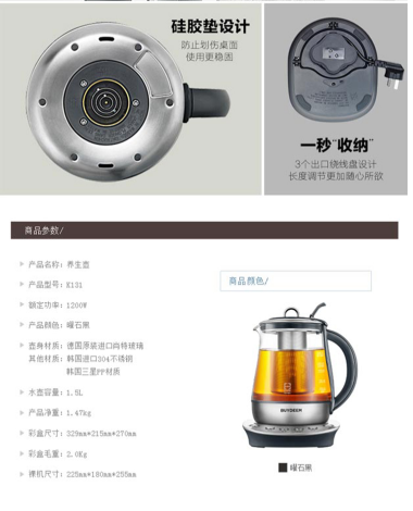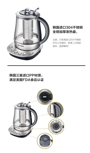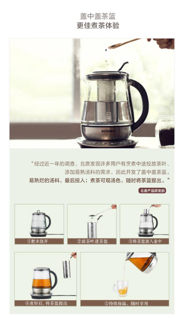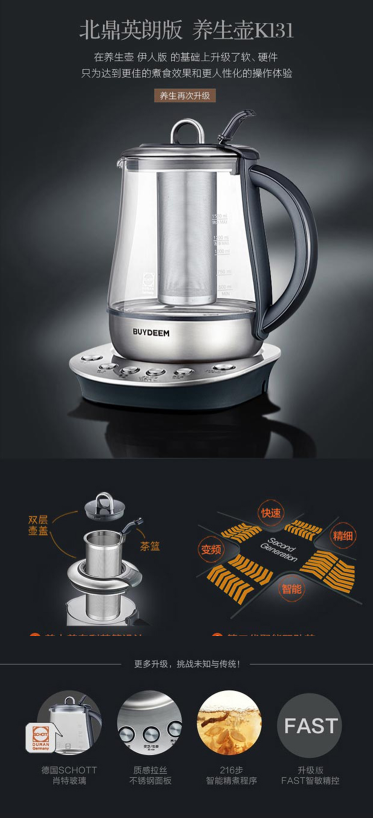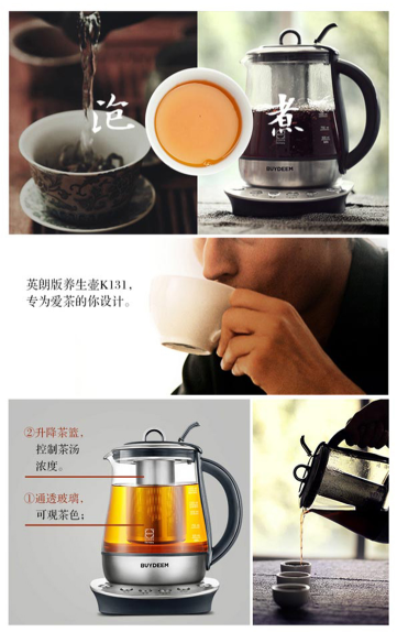 商品名称:北鼎 BUYDEEM 养生壶玻璃 煮茶器煎药壶电热水壶多功能 花茶壶烧水壶热水壶不锈钢K131
