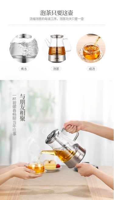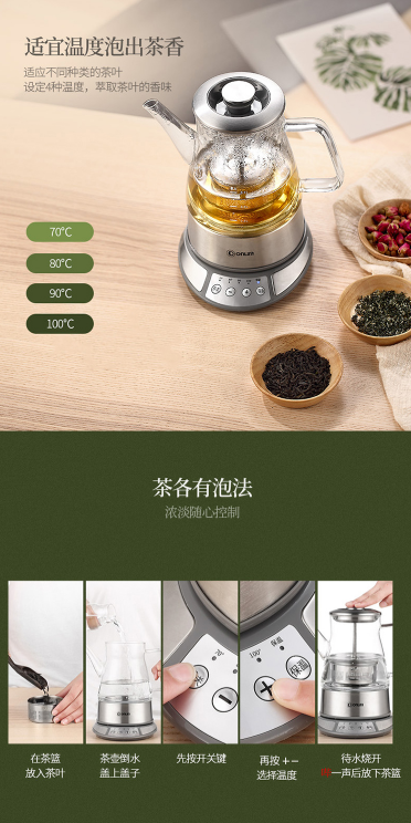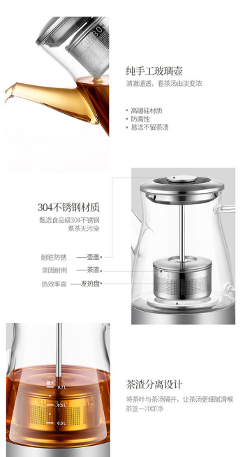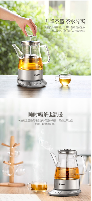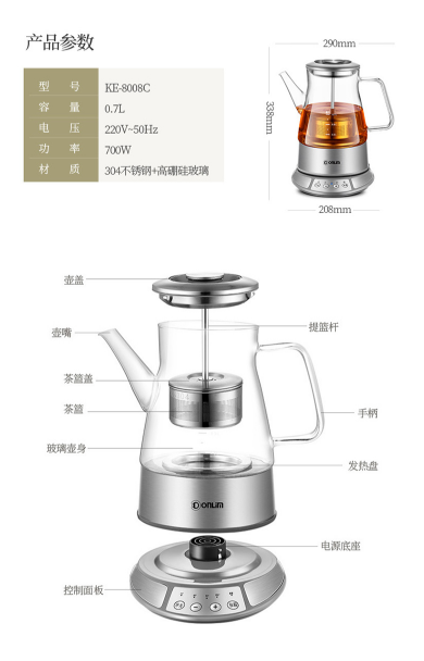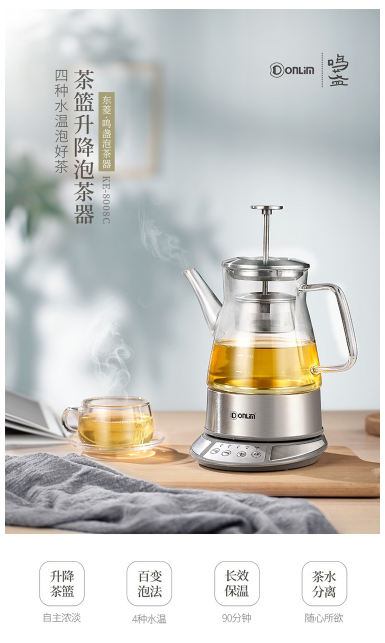 商品名称:东菱 DONLIM 养生壶 玻璃 加厚 无级提篮 智能控温冲泡 多功能全自动煮茶壶 热水壶 茶壶 煮茶器 KE-8008C