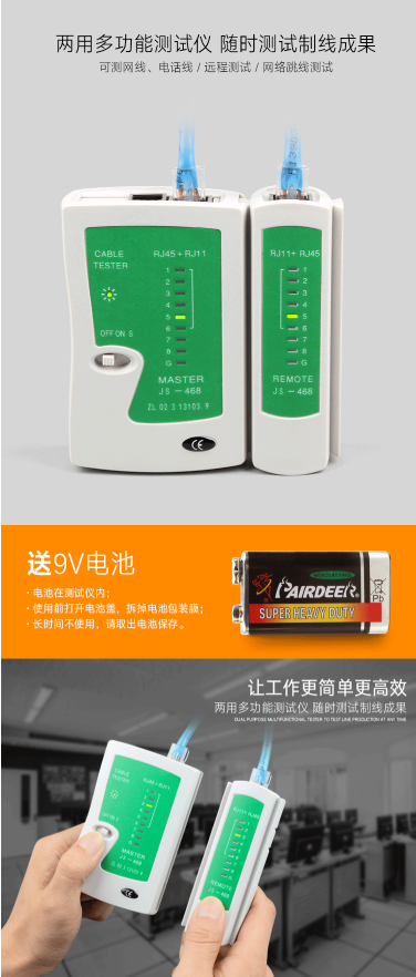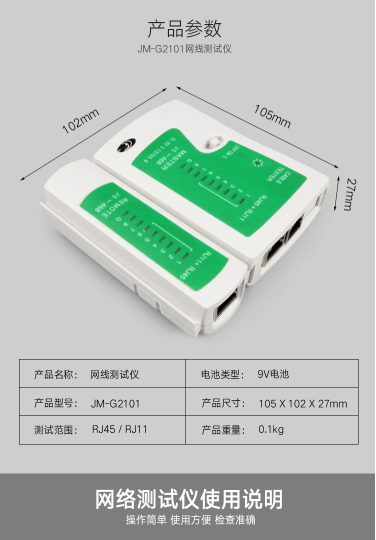 商品名称:吉米家居 JM-G2101 网络测试仪测线器网线测试仪电话线测试仪寻线仪送9V电池