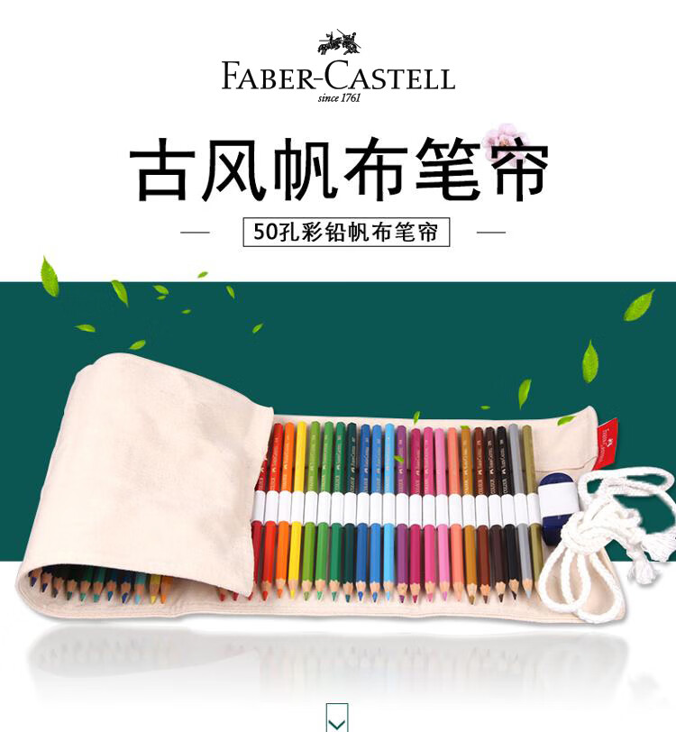 商品名称:辉柏嘉 FABER-CASTELL 50孔彩铅笔帘笔袋 卷式布艺帆布笔帘素描彩色铅笔笔袋