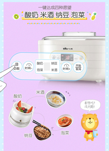 商品名称:小熊 BEAR 酸奶机家用全自动大容量分杯米酒机纳豆泡菜机SNJ-C10P2