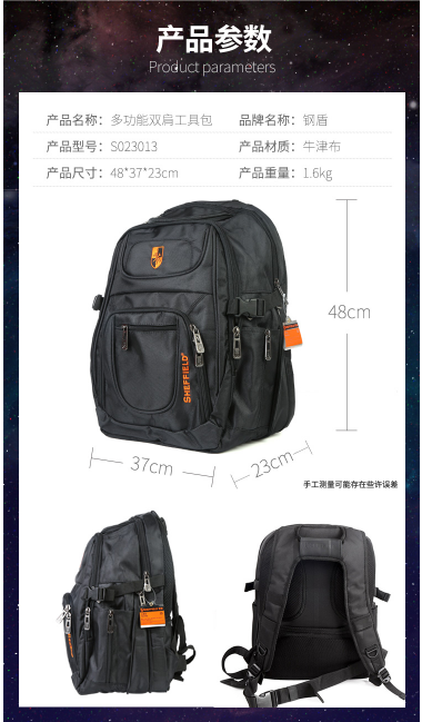 商品名称:钢盾 S023013 多功能双肩工具包维修加厚帆布大号背包电梯工作包