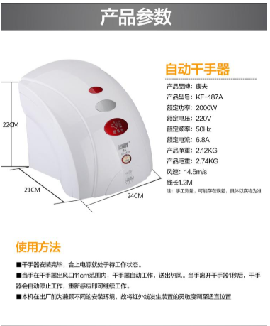 商品名称:康夫 CONFU KF-187A 自动感应干手器 白色