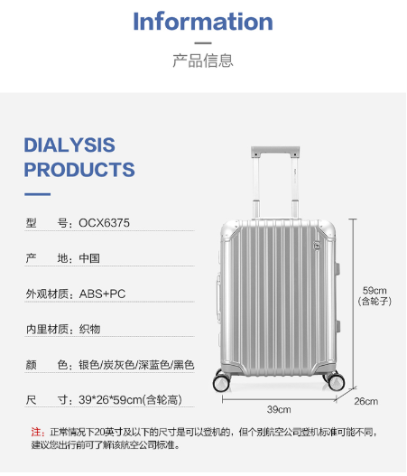 商品名称:爱华仕 OIWAS 6375 铠甲系列铝框拉杆箱 20英寸银色