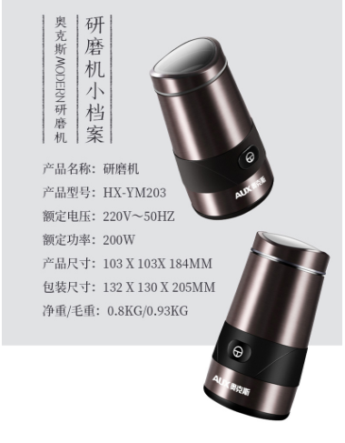 商品名称:奥克斯 AUX 研磨机磨粉机家用磨豆五谷粉碎药材婴儿辅食料理机 YM203