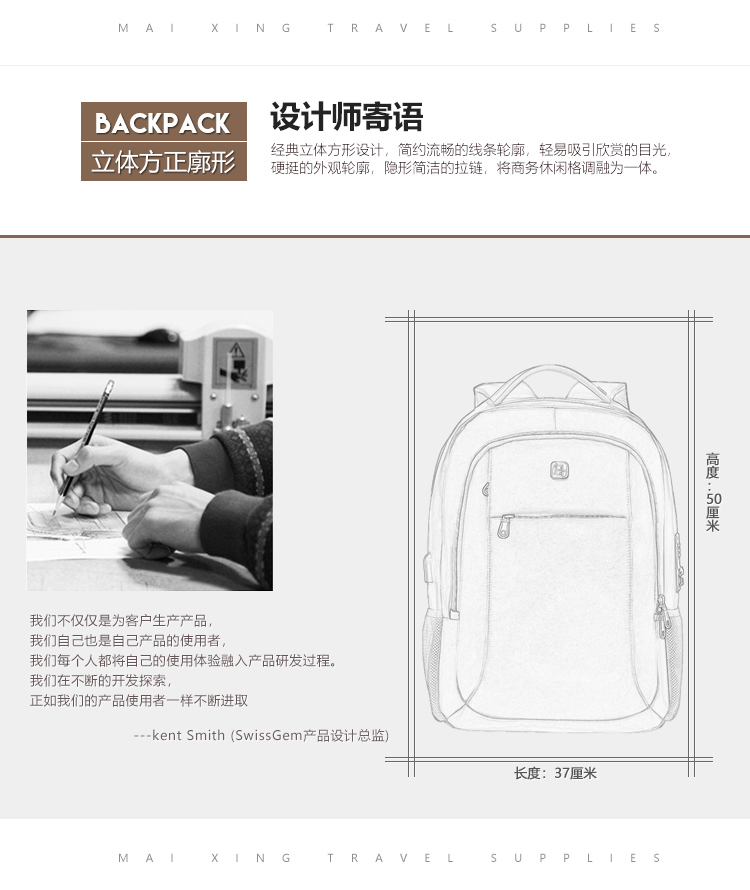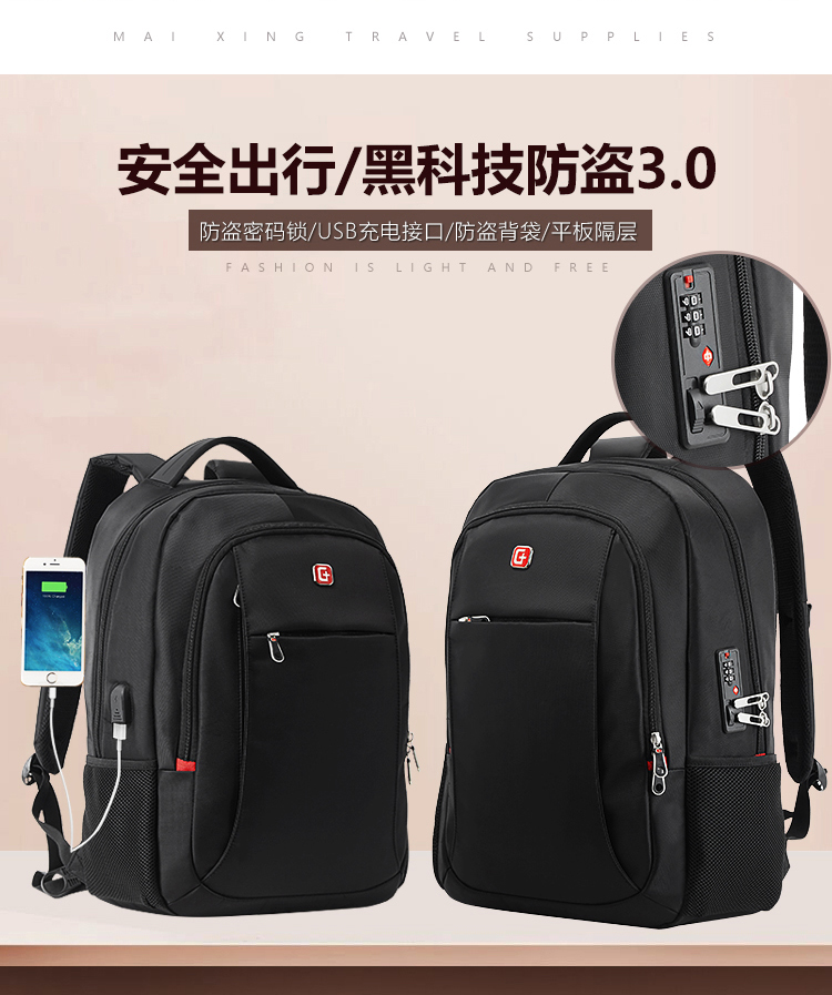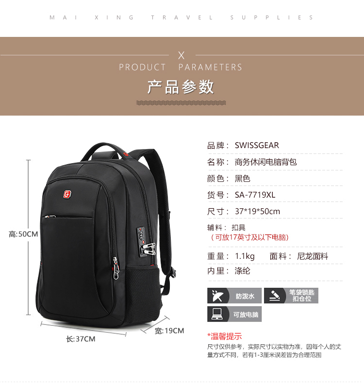 商品名称:瑞士军刀 SWISSGEAR SA-7719 双肩包 男 XL 黑色