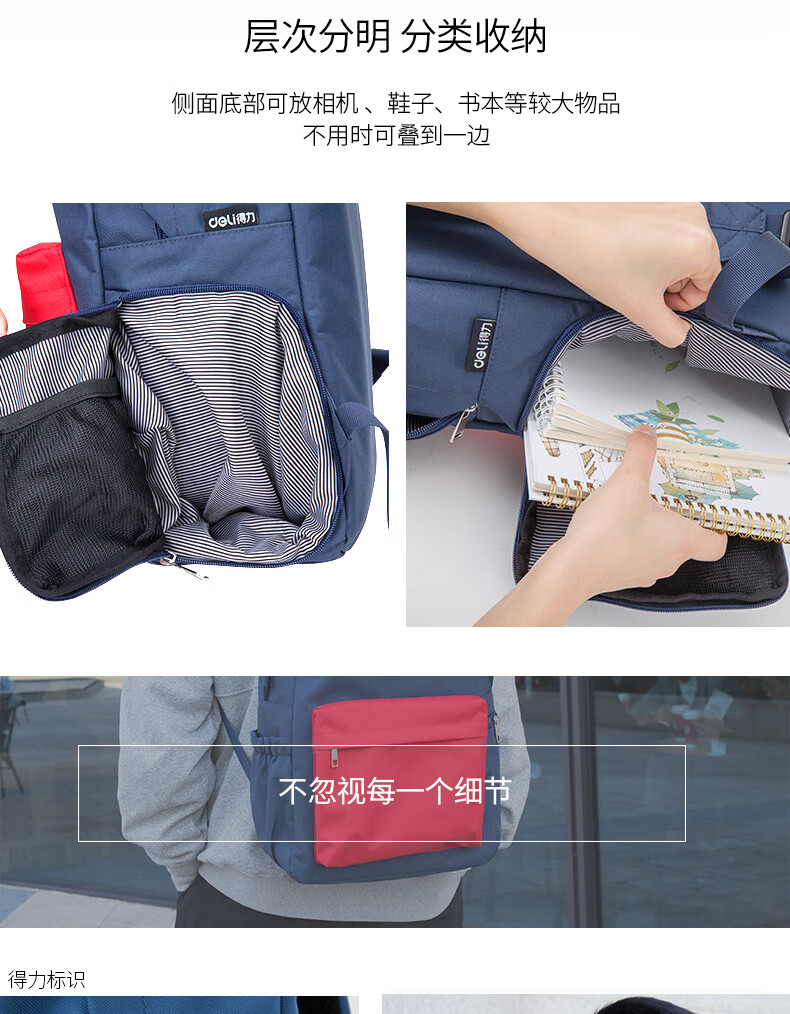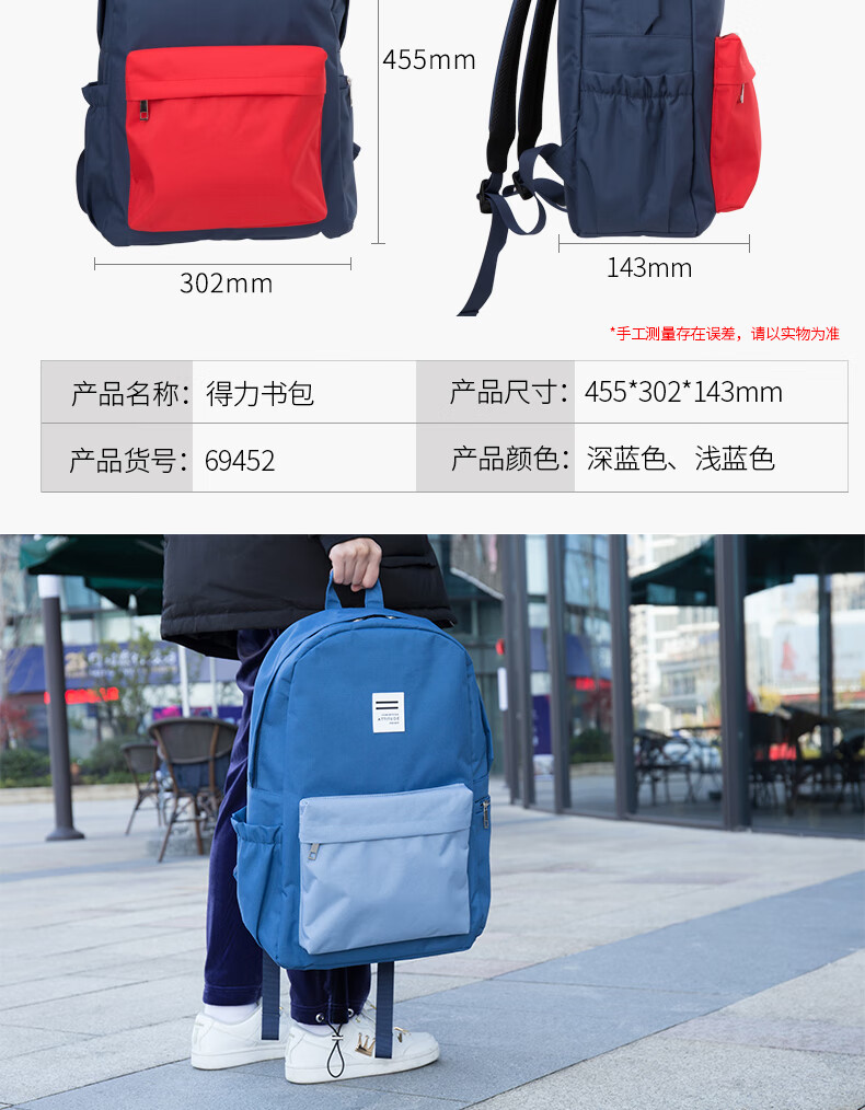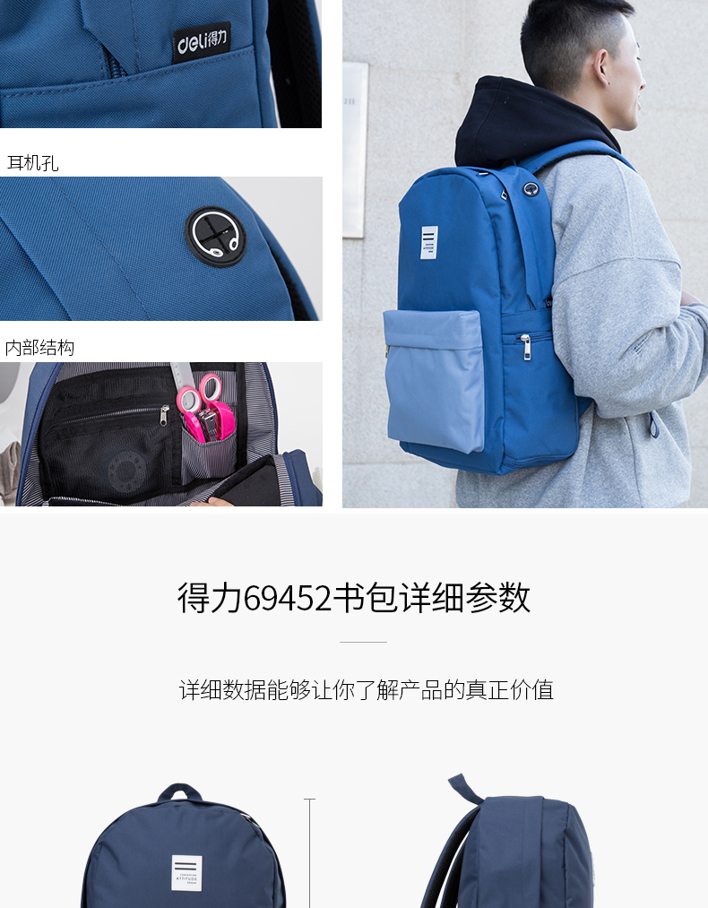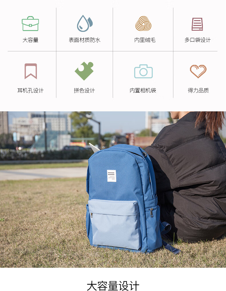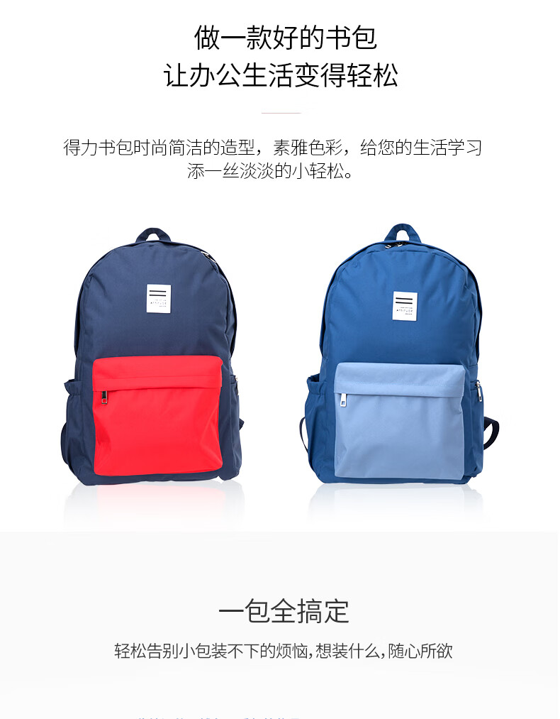 商品名称:得力 DELI 韩版学院风 69452 双肩包 星际蓝