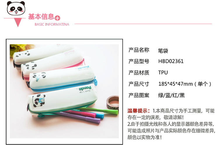 商品名称:广博 GUANGBO 果冻型铅笔袋文具袋熊猫款式随机HBD02361