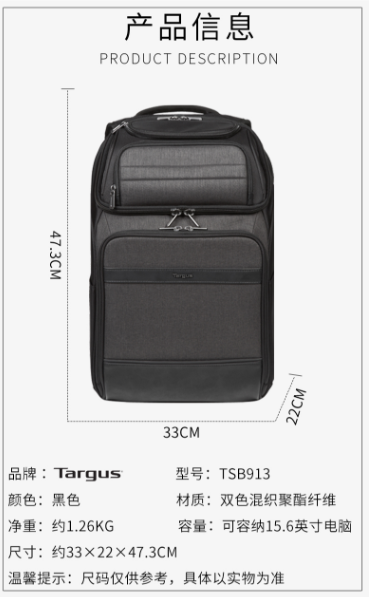 商品名称:TARGUS 电脑包15.6英寸 女黑色 913