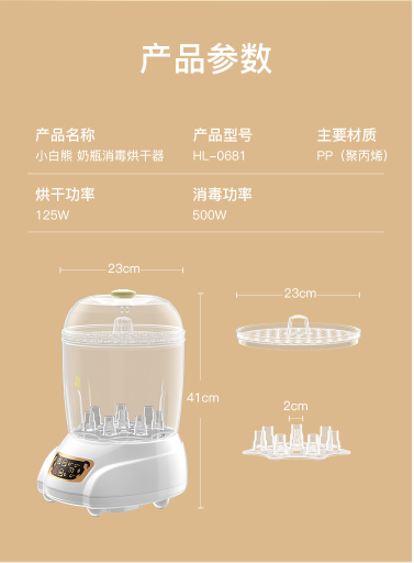 商品名称:小白熊 SNOWBEAR HL-0681 婴儿奶瓶蒸汽消毒器 带烘干