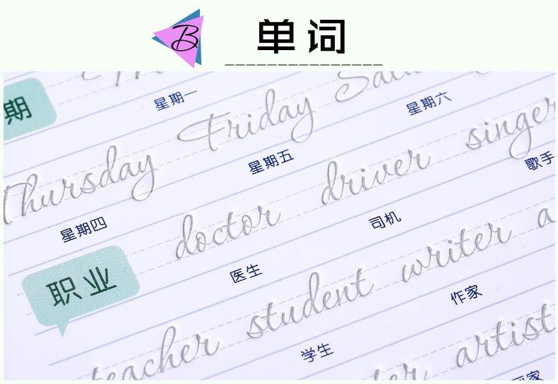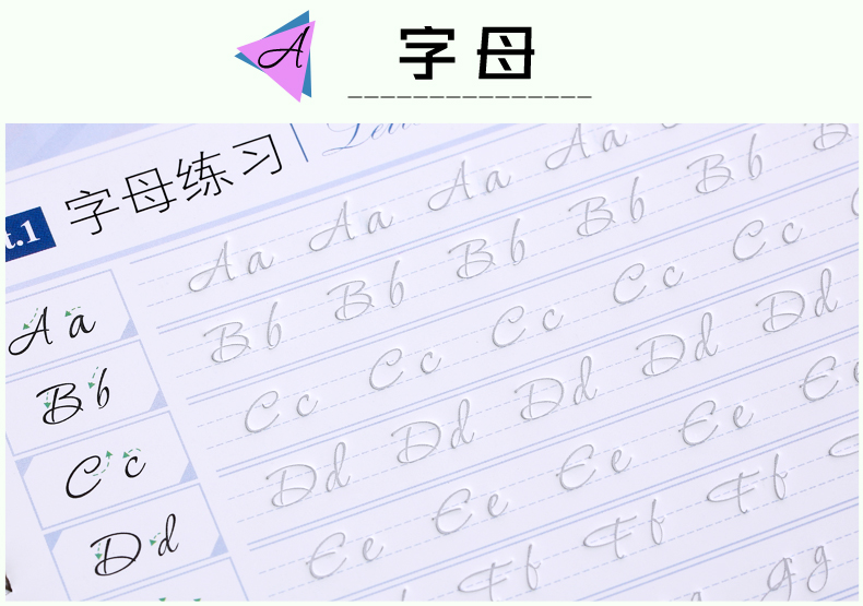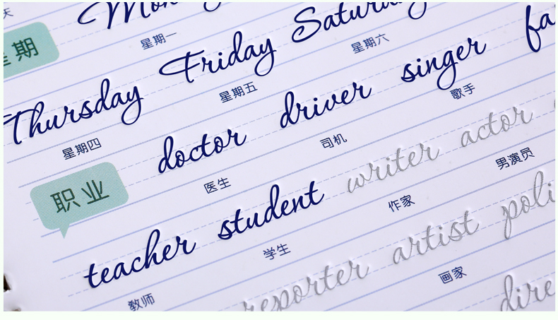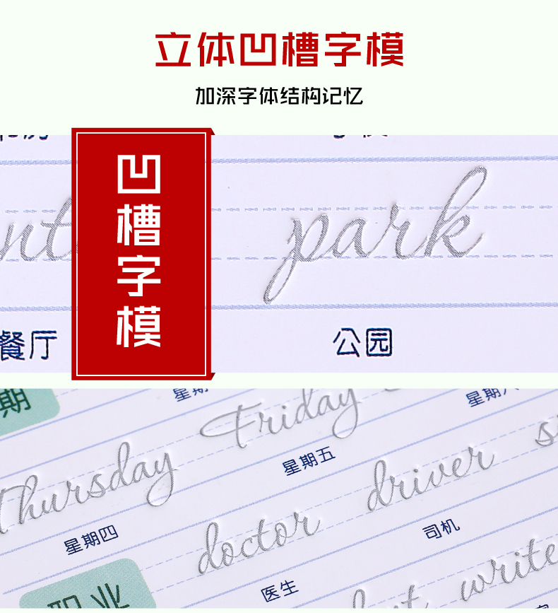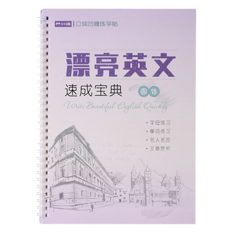 型号:英文圆体凹槽练字帖 学生成人英语练字板 硬钢笔手写体英文花体字帖