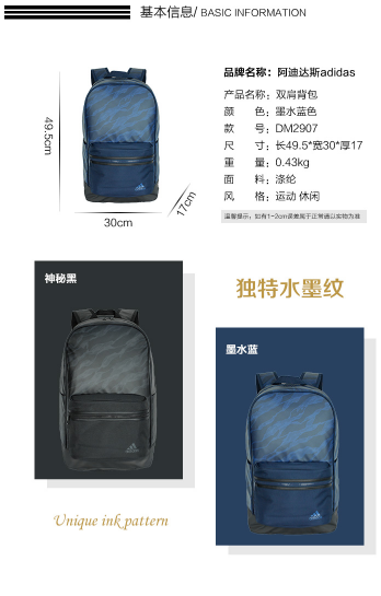 商品名称:阿迪达斯 ADIDAS DM2907 双肩背包 传奇墨水蓝色