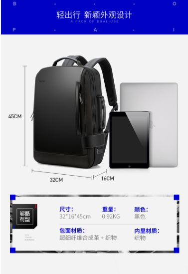 商品名称:博牌 BOPAI 751-006631 双肩背包 男款 15.6寸 黑色