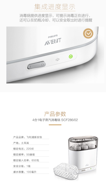 商品名称:飞利浦新安怡 AVENT SCF286/02 4合1 电子蒸汽消毒锅