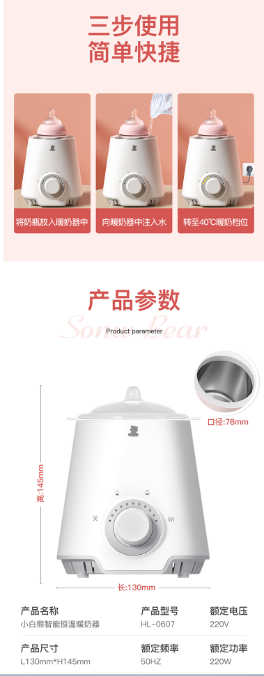 商品名称:小白熊 SNOWBEAR HL-0607 家用暖奶器多功能温奶器恒温多功能温奶器升级款