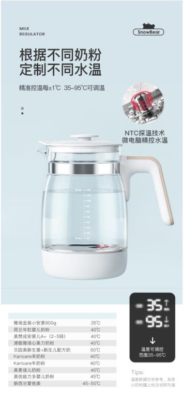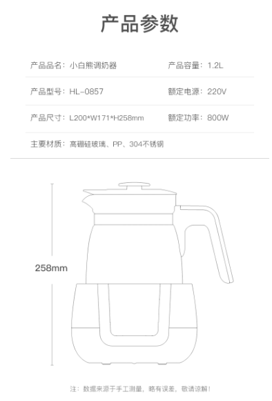 商品名称:小白熊 SNOWBEAR HL-0857 恒温暖奶器温奶器玻璃水壶 1.2L 家庭装
