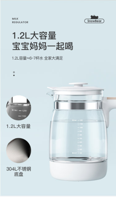 小白熊 SNOWBEAR HL-0857 恒温暖奶器温奶器玻璃水壶 1.2L 家庭装