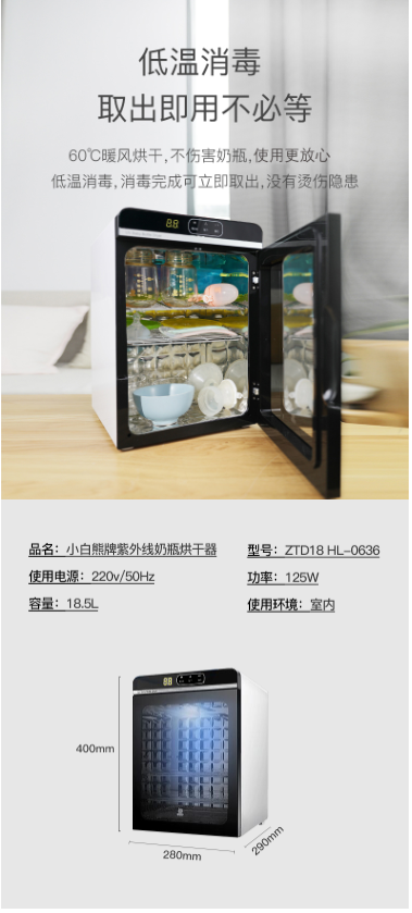 商品名称:小白熊 SNOWBEAR HL-0636 恒温多功能婴儿紫外线消毒器