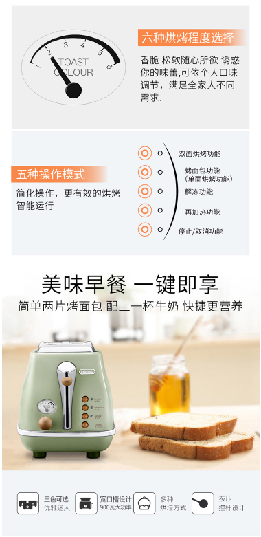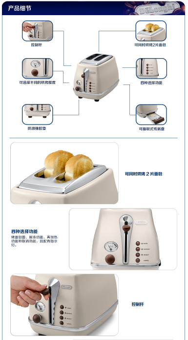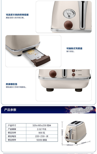商品名称:德龙 DELONGHI CTO2003(奶油白)多士炉 面包机 吐司机 烤面包机 家用 不锈钢 防尘盖