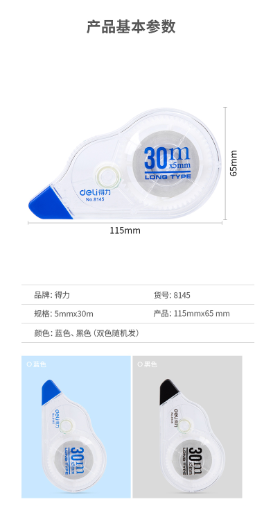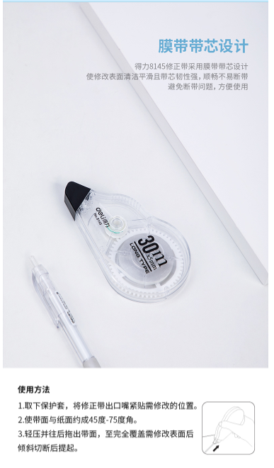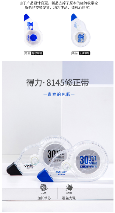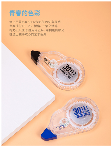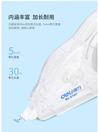 商品名称:得力 DELI 8145 30M加长耐用修正带改正带涂改带 30米