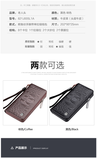 商品名称:老人头 LAORENTOU JD802216J0ZY05L1A 男士 钱包 长款 拉链 黑色