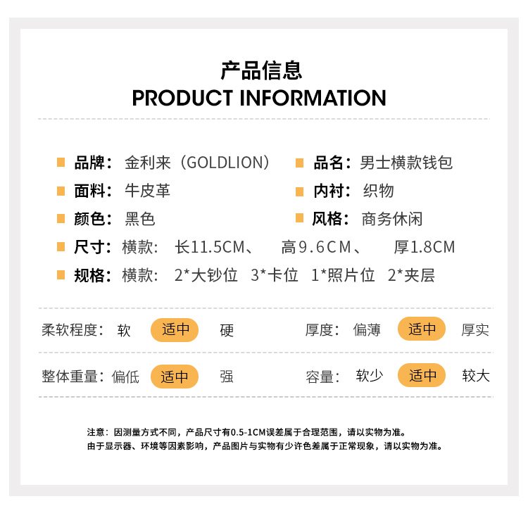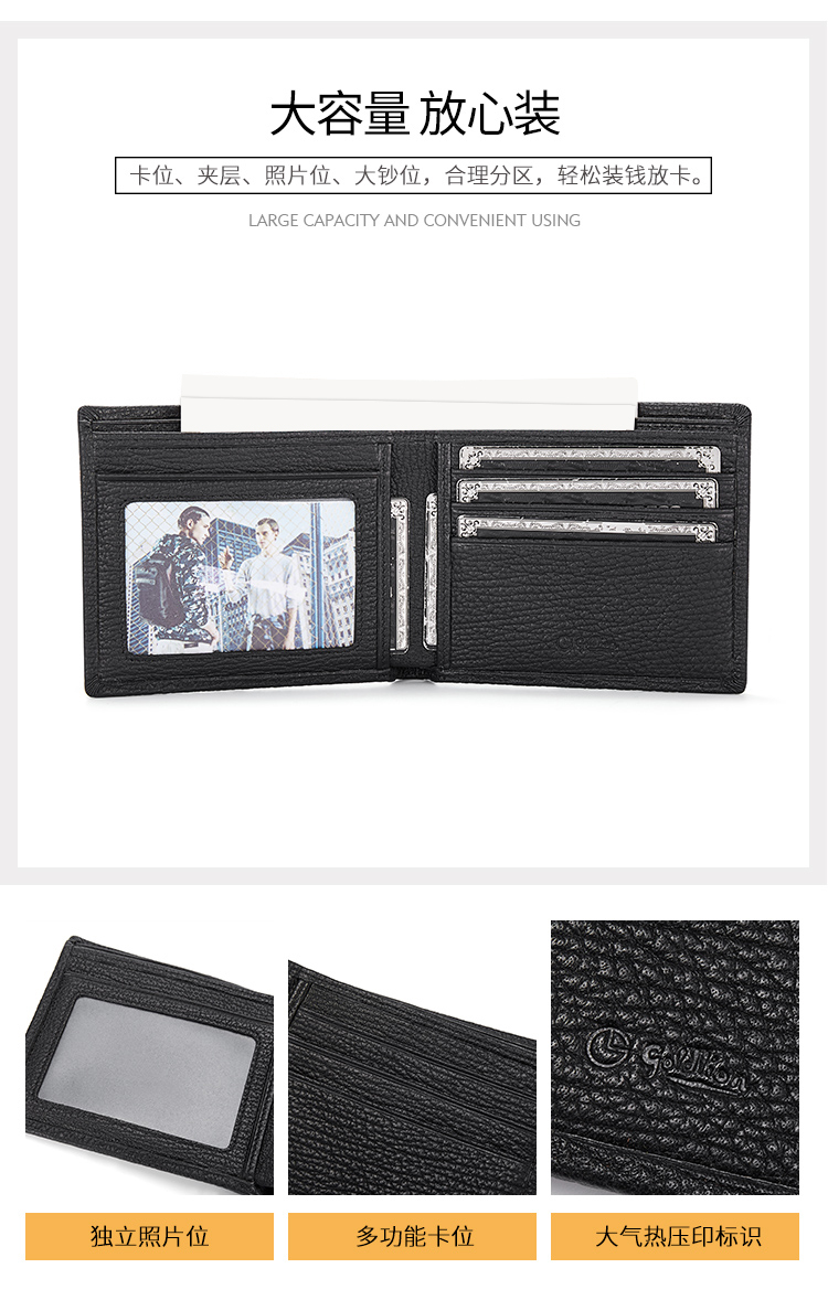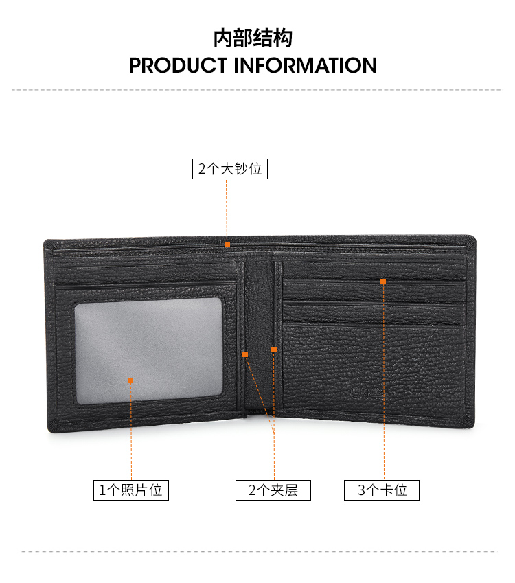 商品名称:金利来 GOLDLION MQ3081043-1191 男士钱包 短款 黑色