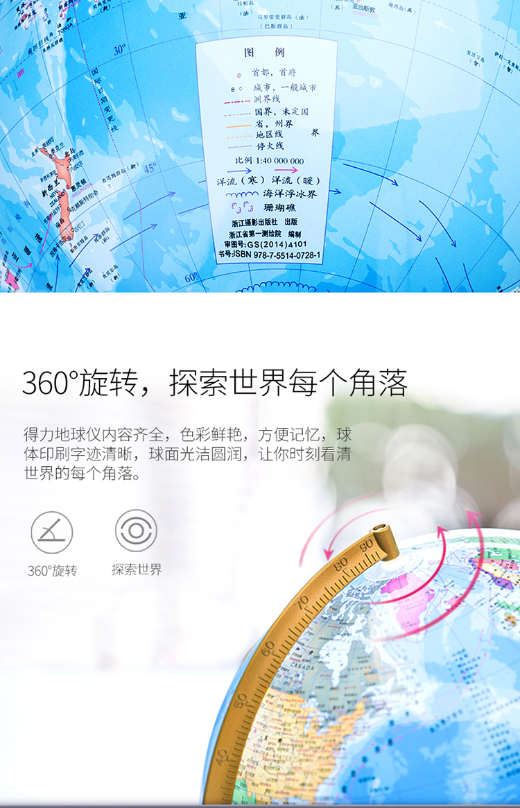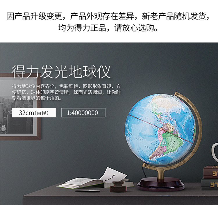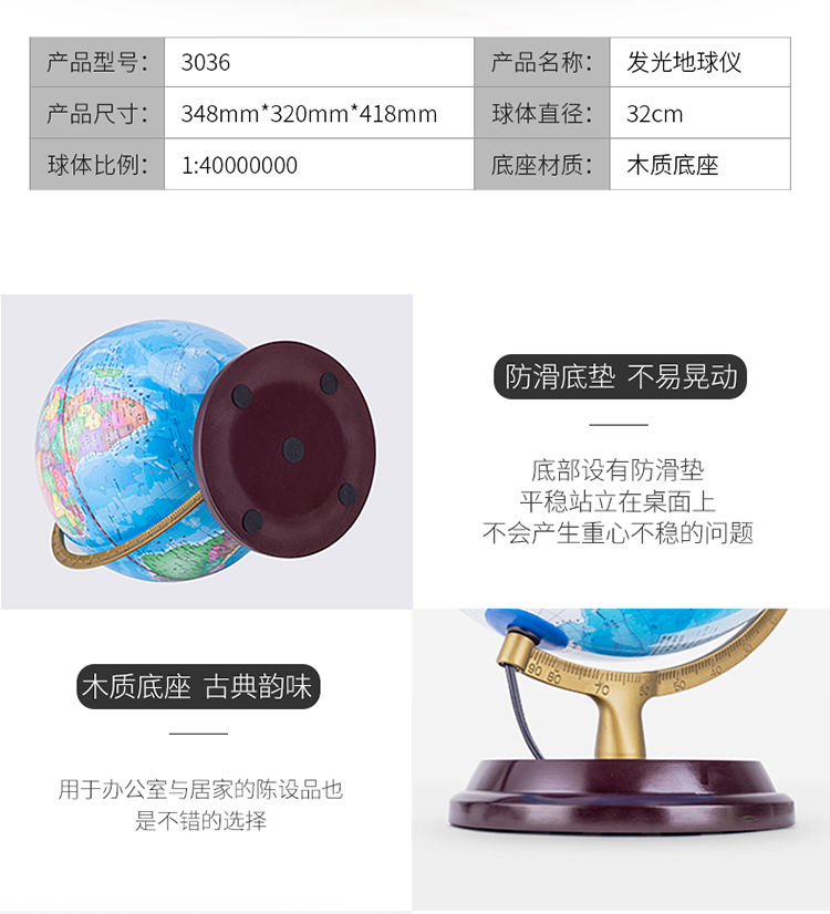 商品名称:得力 DELI 发光旋转地球仪 Φ32CM木座金属架 办公家居摆设 3036