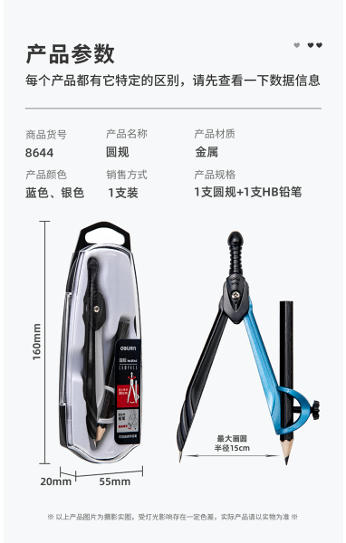 商品名称:得力 DELI 8644 圆规套装 颜色随机