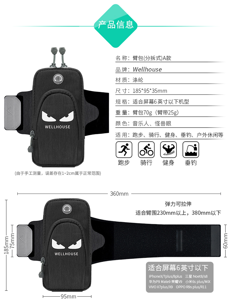 商品名称:WELLHOUSE WH-06950 手机臂包 6英寸以内 音乐人
