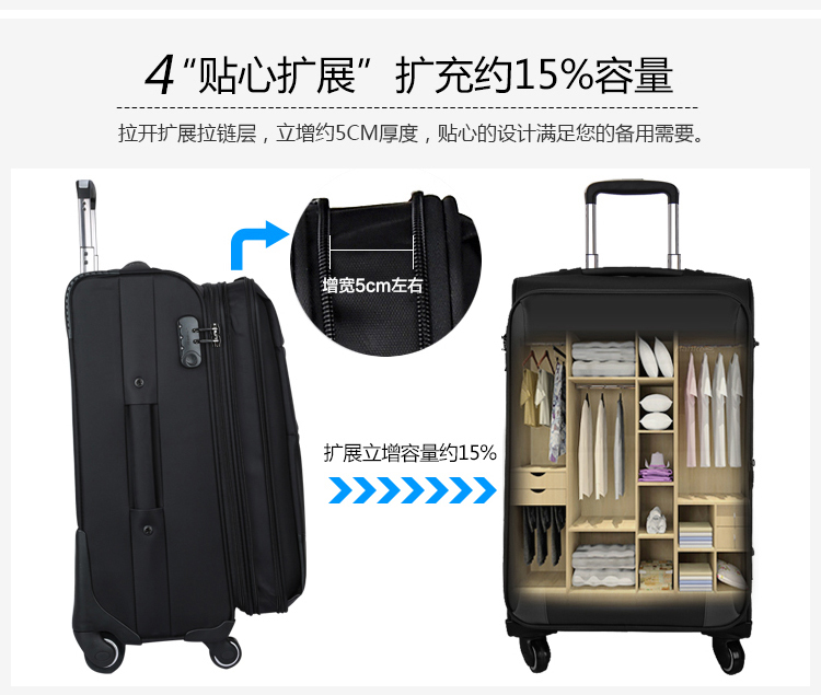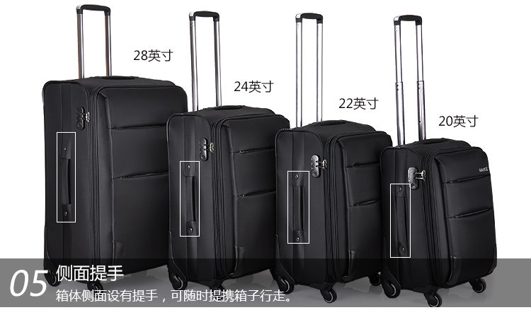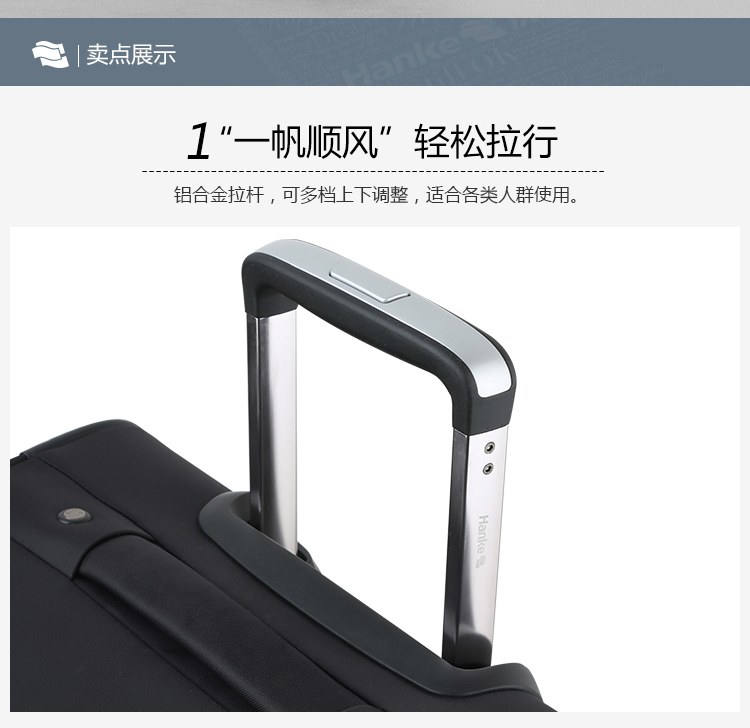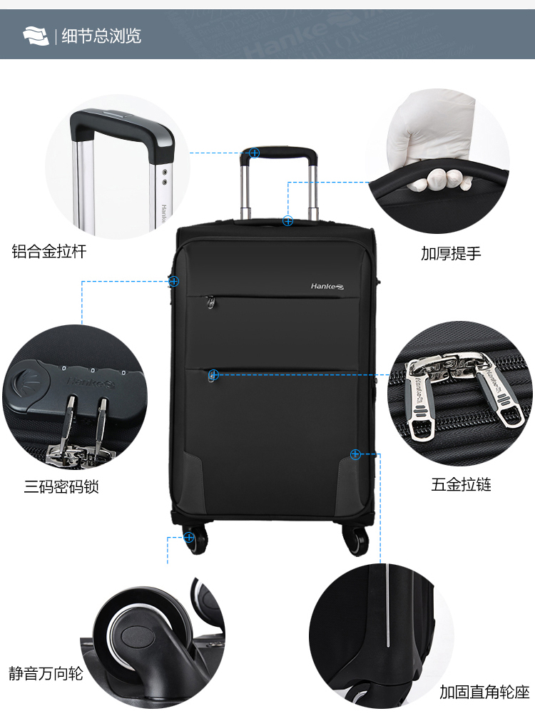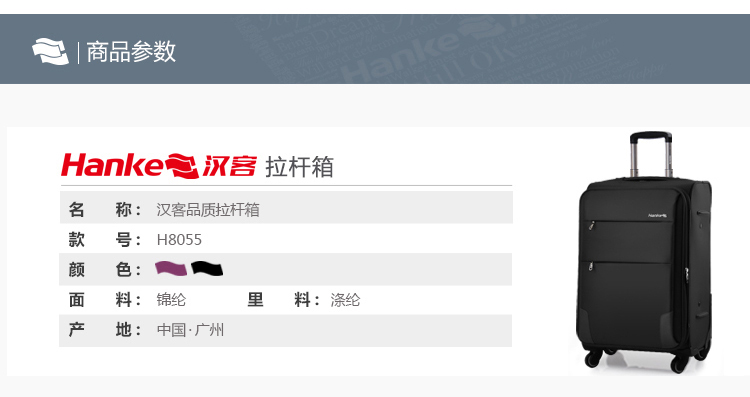 商品名称:汉客 HANKE H8055 拉杆箱 拉链 布 万向轮 双杆 黑色 24英寸 配密码锁