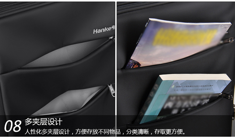 汉客 HANKE H8055 拉杆箱 拉链 布 万向轮 双杆 黑色 24英寸 配密码锁