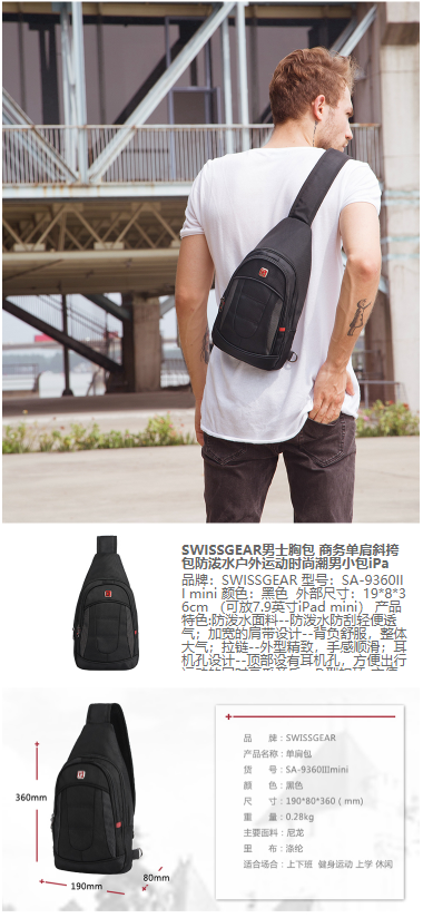 商品名称:SWISSGEAR SA-9360IIIMINI 黑色 男士 胸包