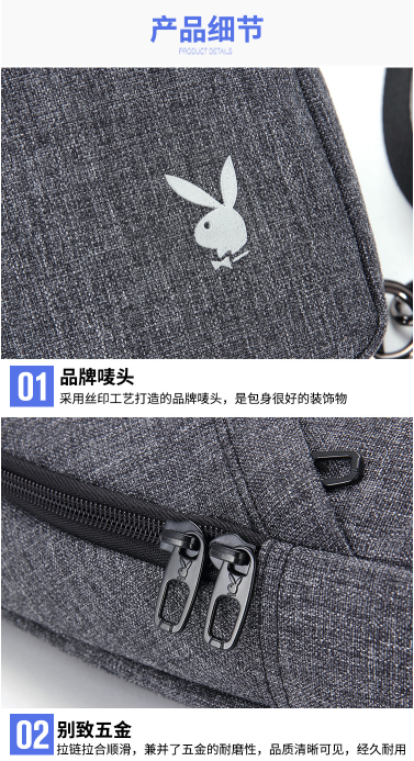 商品名称:花花公子 PLAYBOY PBP1041-8H1 单肩斜挎包 浅灰