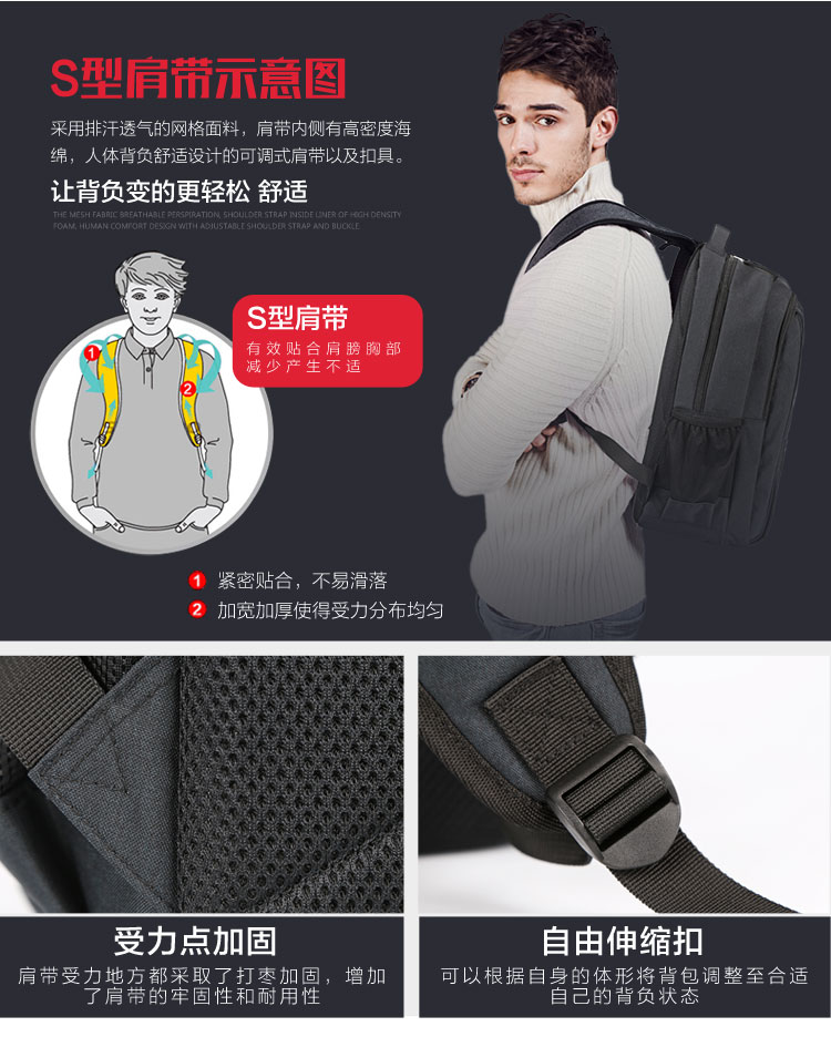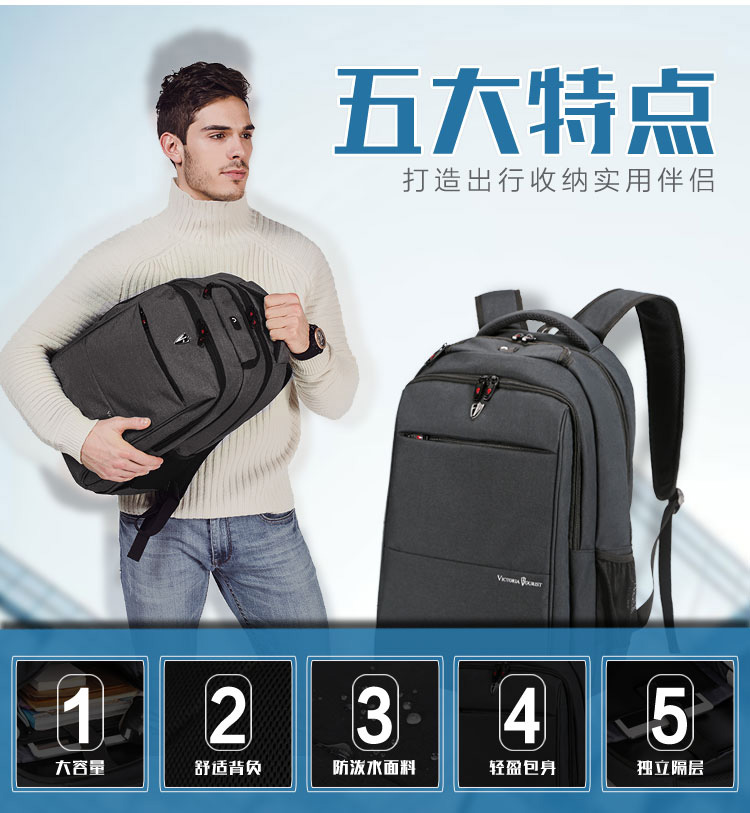 商品名称:维多利亚旅行者 VICTORIATOURIST V9006 双肩电脑包 15.6英寸 黑色