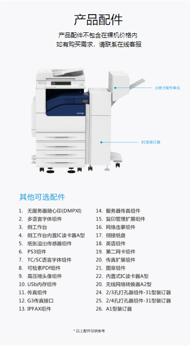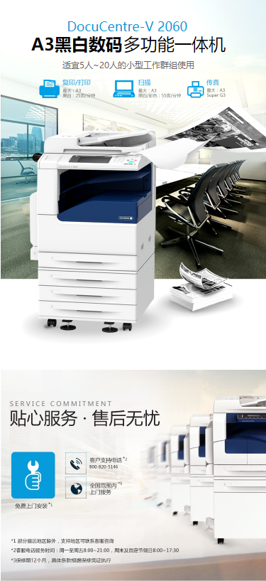 商品名称:富士施乐 FUJIXEROX DOCUCENTRE-V 2060CPS(双面器/双面输稿器/网络打印卡/2100页)复印机