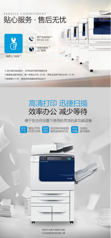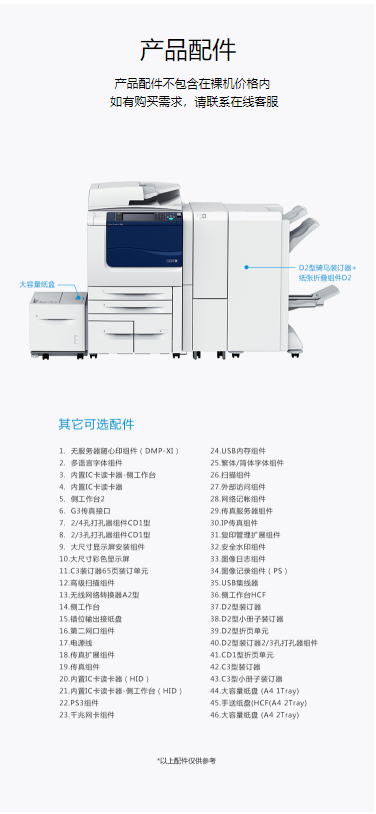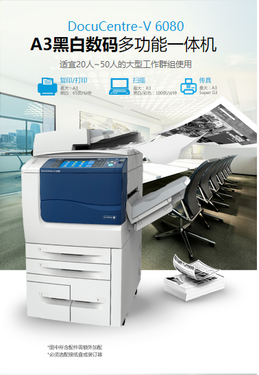 商品名称:富士施乐 FUJIXEROX DOCUCENTRE-V 6080CP(双面输稿器/网络打印卡/4450页/含扫描组件/C3型骑马装订器)复印机