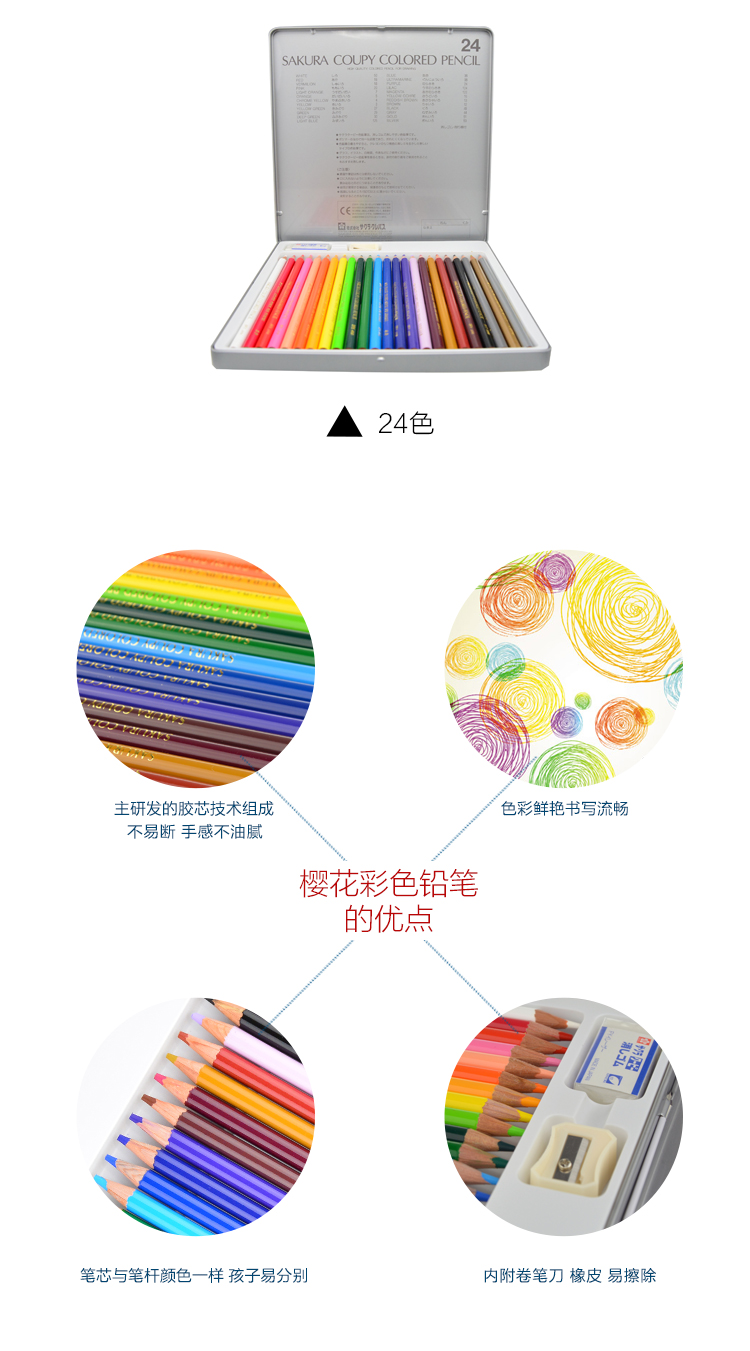 商品名称:樱花 SAKURA 24色彩色铅笔套装(铁盒)PFY-24【日本进口】