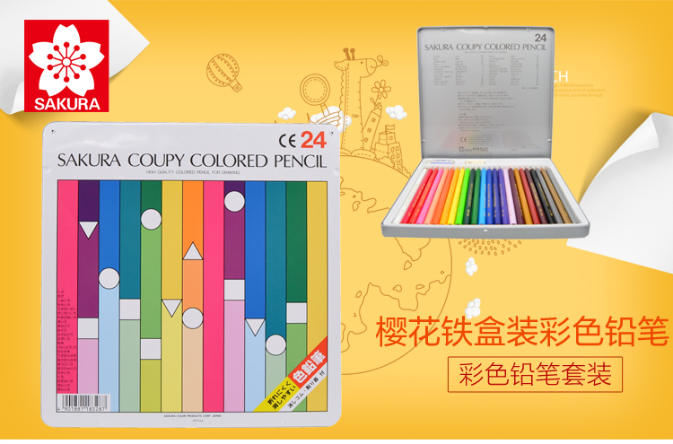 樱花 SAKURA 24色彩色铅笔套装(铁盒)PFY-24【日本进口】