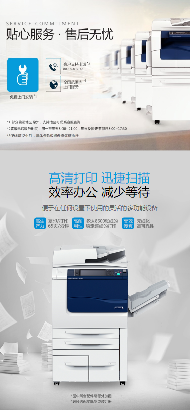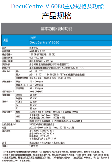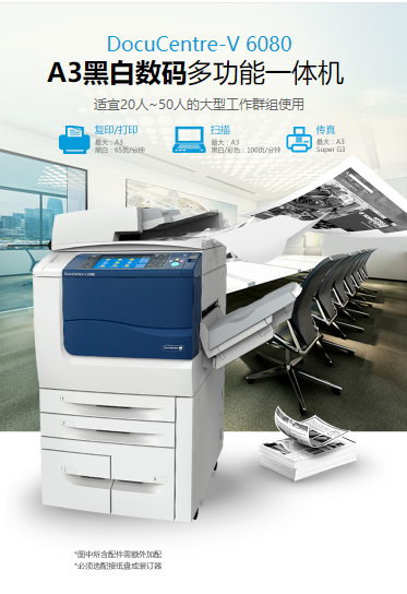 商品名称:富士施乐 FUJIXEROX DOCUCENTRE-V 6080CP(双面输稿器/网络打印卡/4450页/含扫描组件)复印机