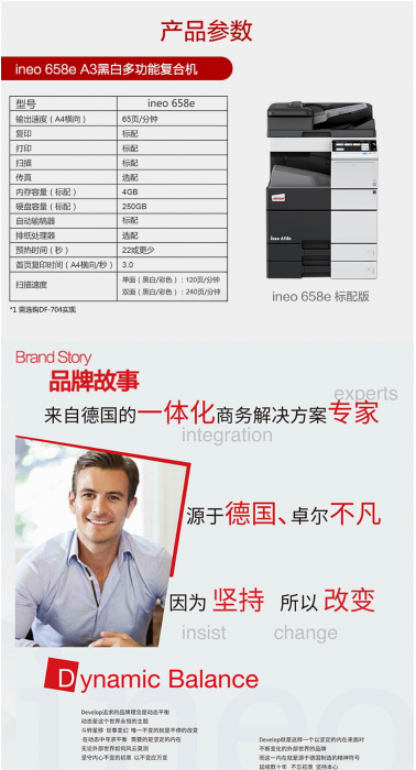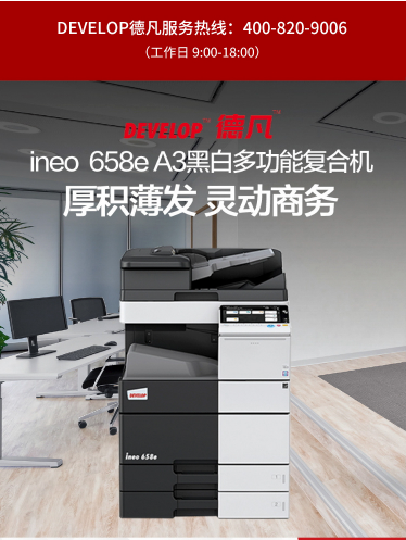 商品名称:德凡 DEVELOP INEO+658E A3黑白多功能复合机(双面扫描输稿器+双500页纸盒+150页手送托盘)(3年质保+上门服务)