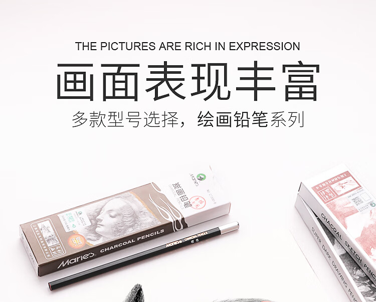 商品名称:马利 MARIES 炭画铅笔中性素描专用碳笔12支盒装C7300