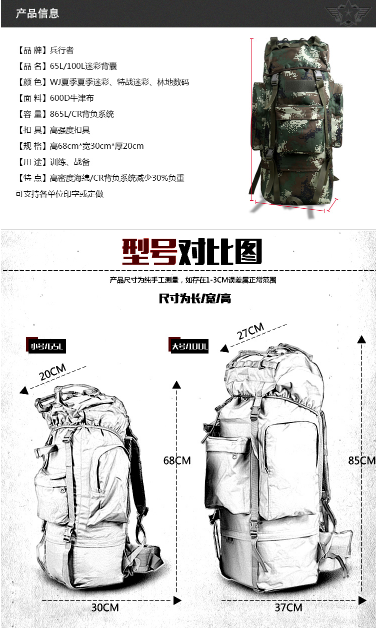 商品名称:兵行者 SOIDIERS WALKER L129 双肩包 100L 林地数码